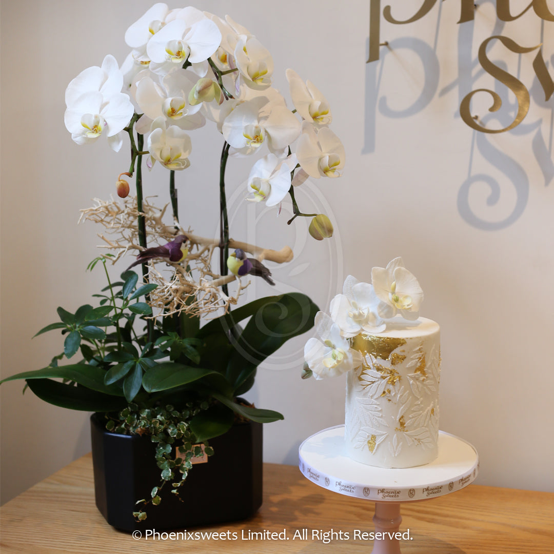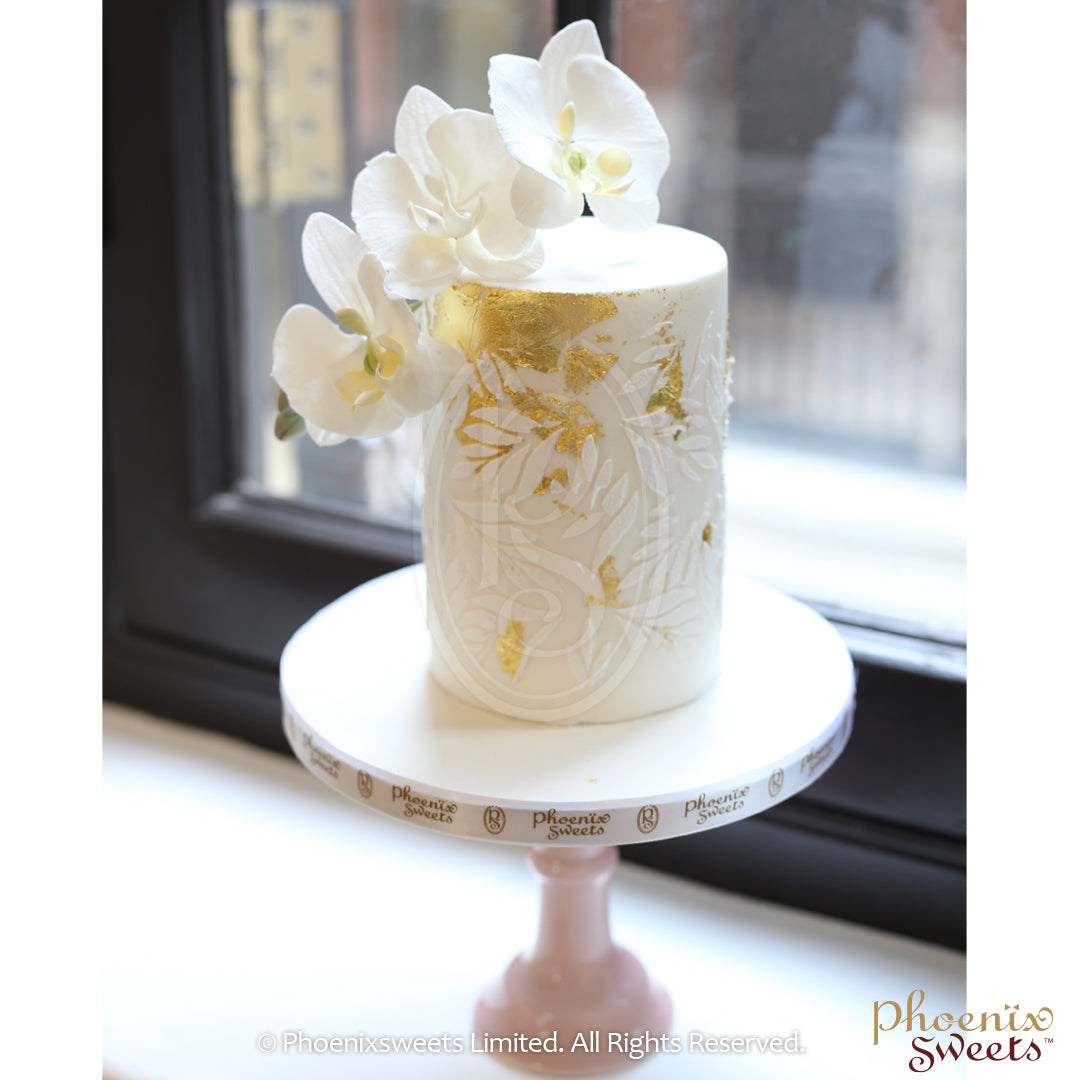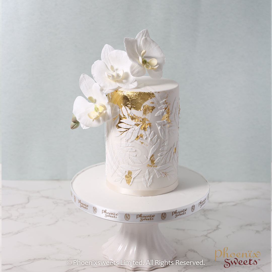A stunning design with our handmade sugar orchid and amazing texture decorated with gold foil.