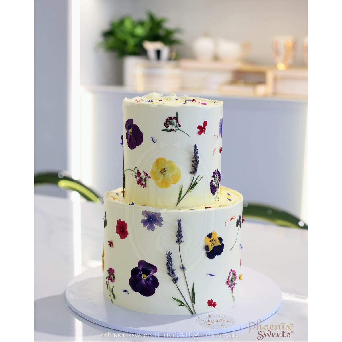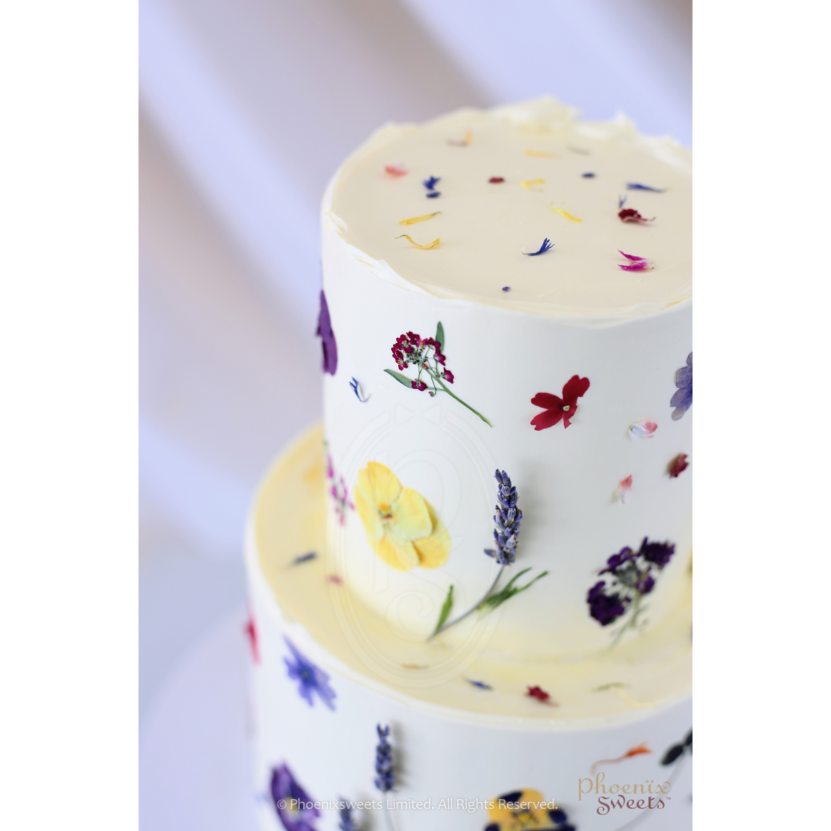 Make any occasion extra special with the elegant and heart-warming cake from Phoenix Sweets. This showstopper cake is a decadent treat for the senses, featuring the handpicked edible dried flowers decoration on silky buttercream frosting.