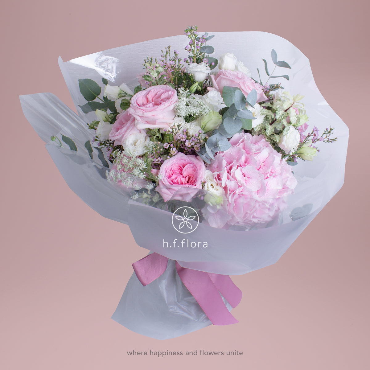 The combo includes a cake and a stunning bouquet from h.f.flora. Other bouquet x cake combo with other cake choices is available at: https://shop.phoenixsweets.com/collections/h-f-floral-x-phoenix-sweetes-combo