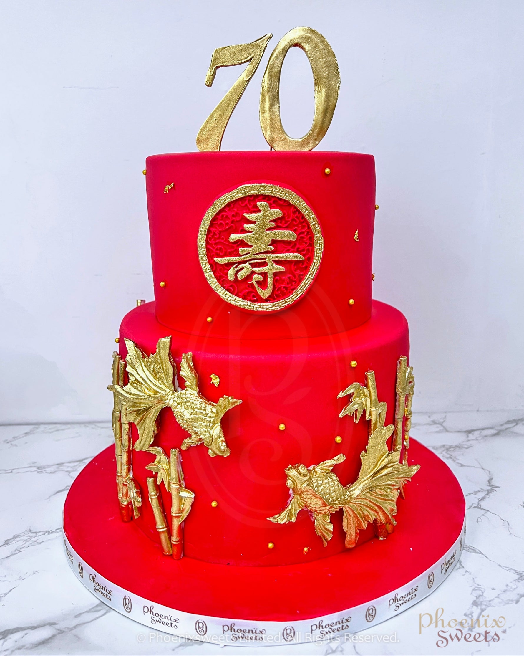 Fondant Cake - Red Live Long Cake with Goldfish (2 tiers)