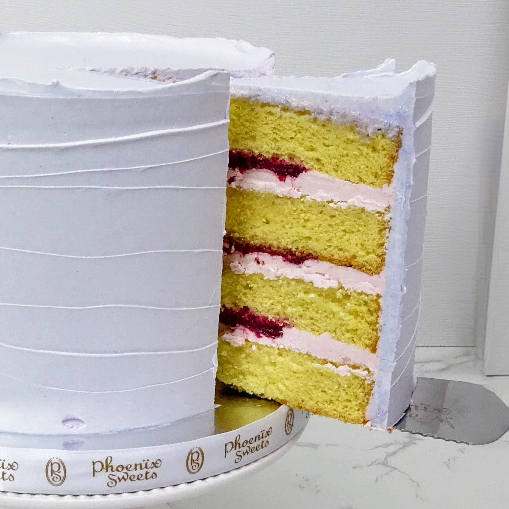 Savor the enchanting taste of our Vanilla cake at Phoenix Sweets, a delightful creation that celebrates simplicity and flavor. Made with premium Madagascar vanilla bean extract, this moist vanilla cake is layered with velvety mixed berry buttercream and house-made mixed berry jam. Crafted with Japanese flour and large American eggs, it offers a light and fluffy texture that perfectly complements the burst of berry goodness. A delightful treat for any occasion!