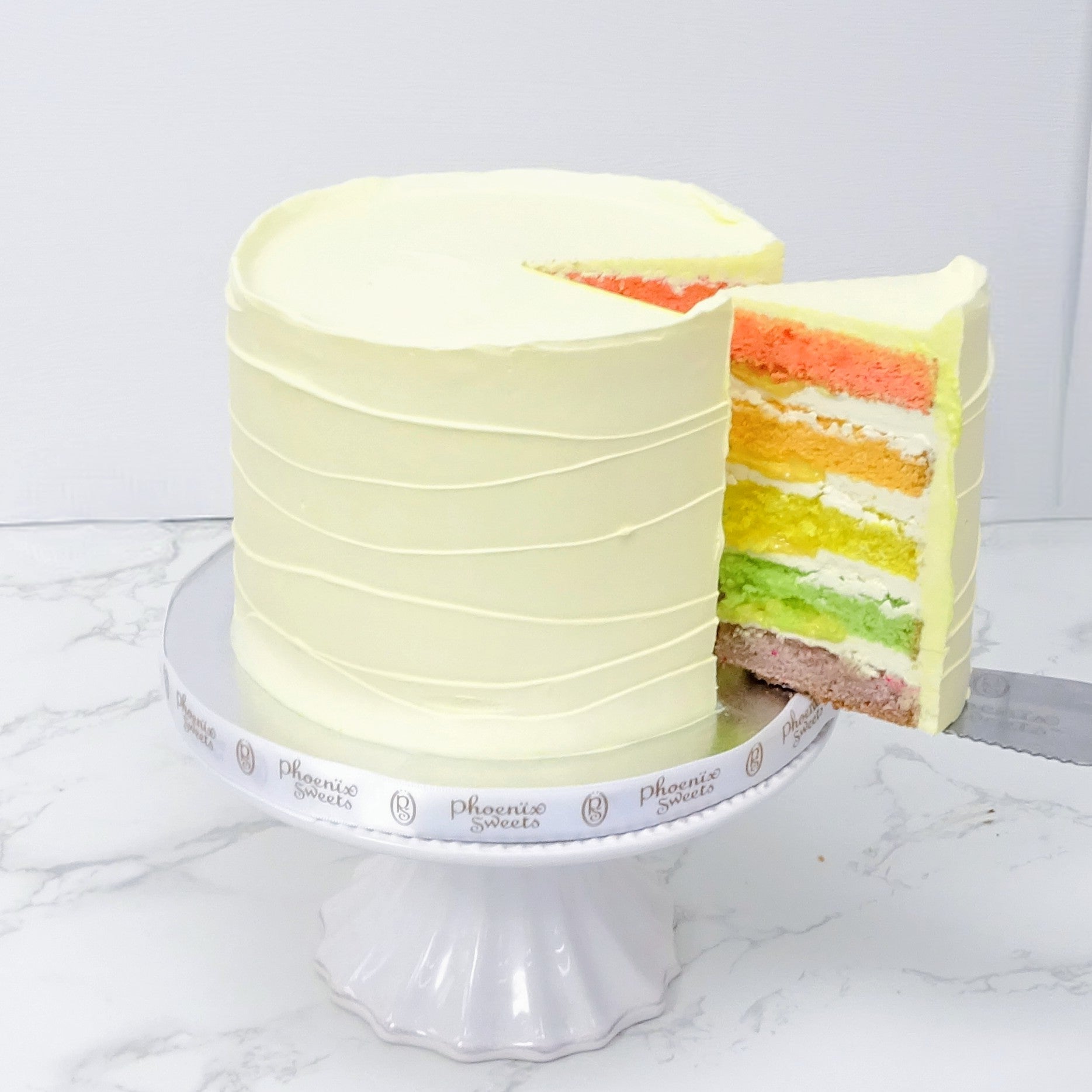 - Rainbow Vanilla (colourful cake layers layered with passion fruit butter cream and lemon curd) (+$200)