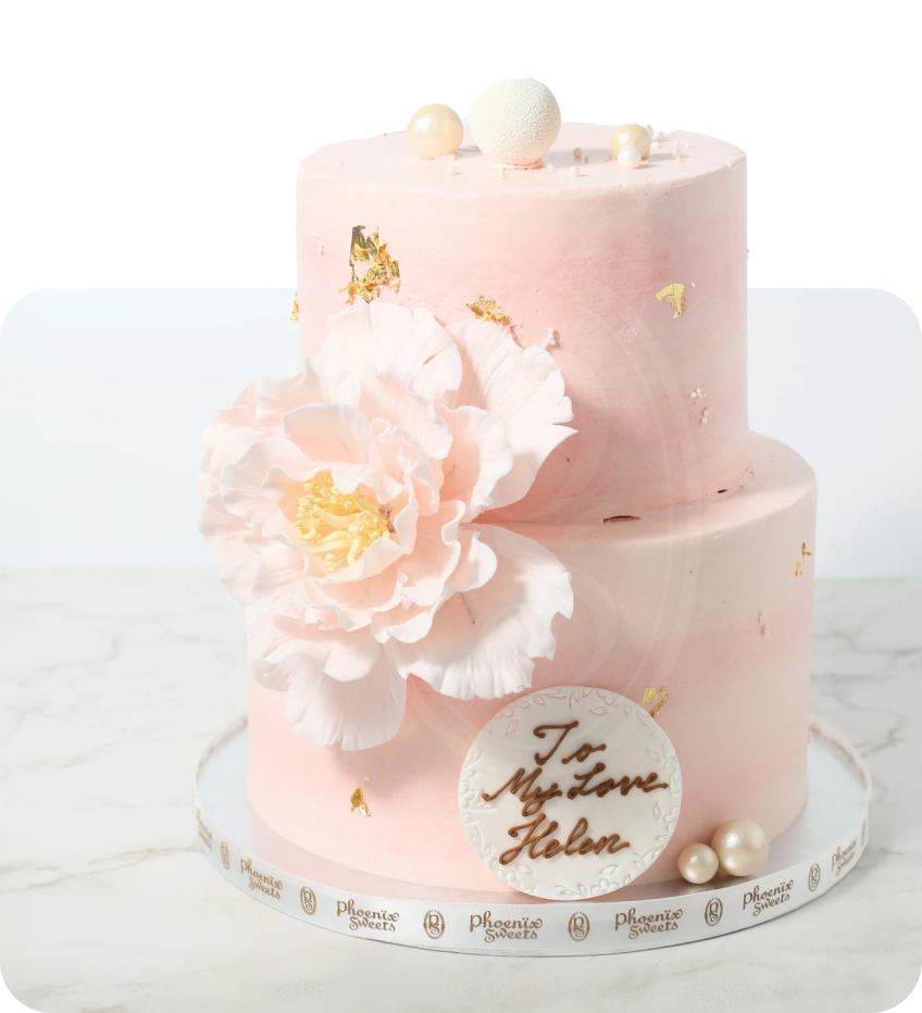 We are also offering some classic wedding cake as standard designs. You may order 2 weeks in advance. Please refer to: https://shop.phoenixsweets.com/collections/standard-wedding-cake
