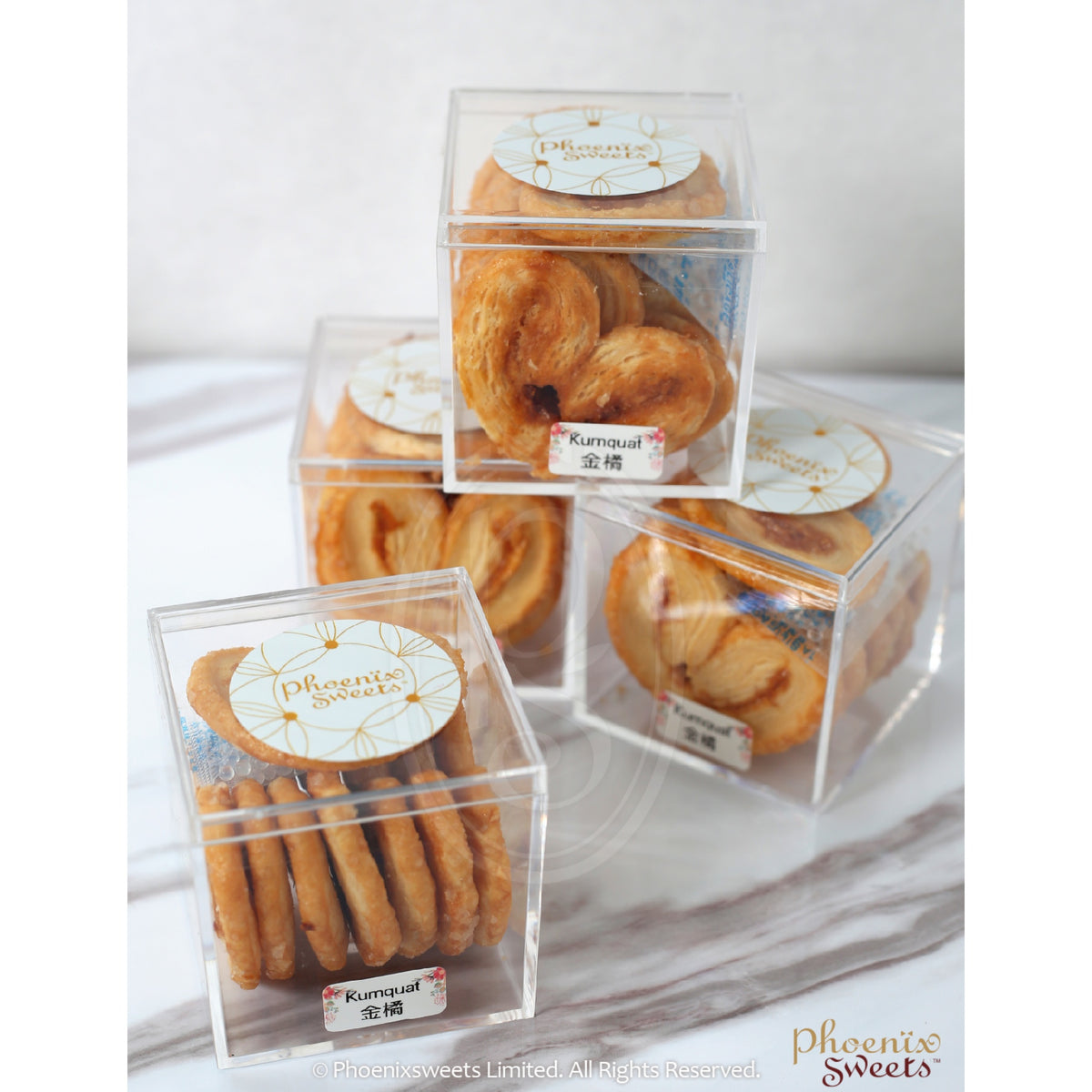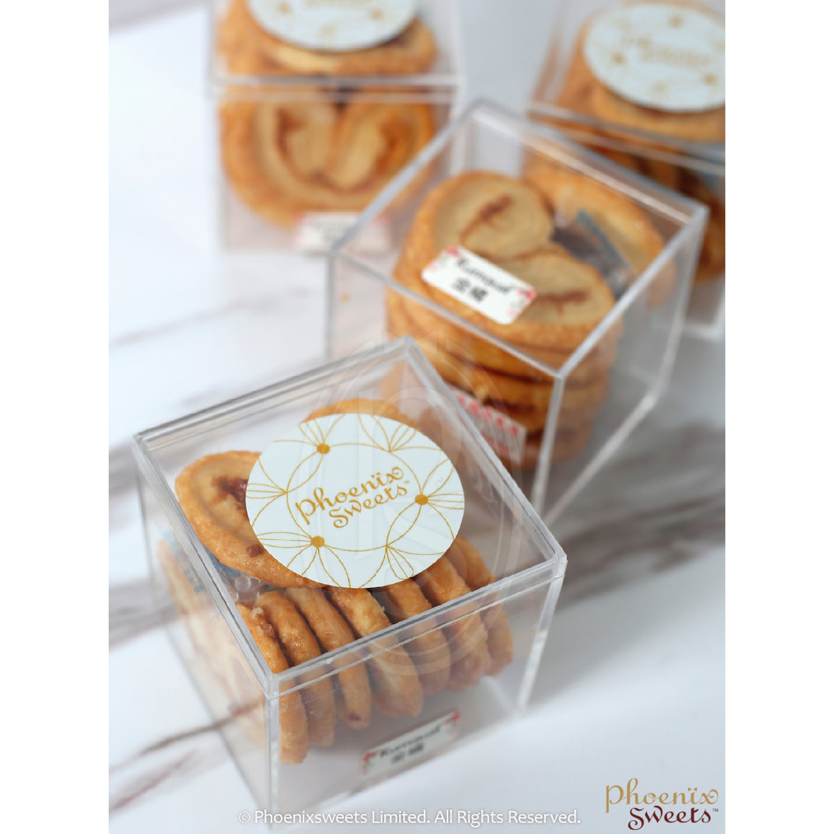 適合作結婚婚宴回禮小禮物,以及送給同事的散水餅,Phoenix Sweets特選的蝴蝶酥,透明膠盒 獨立包裝。